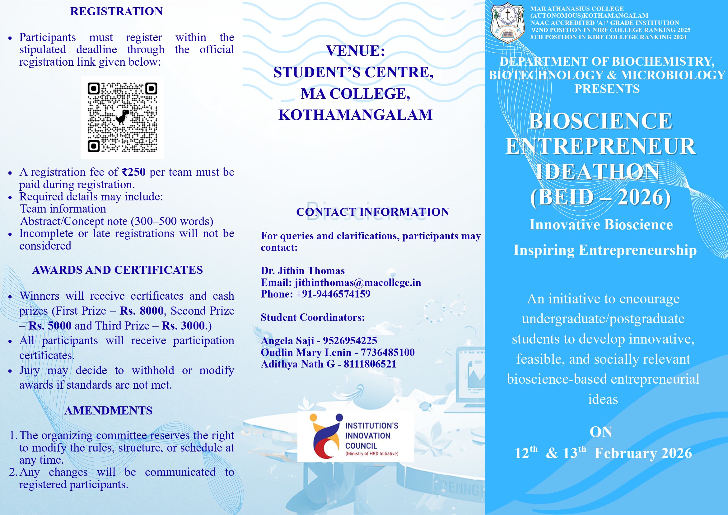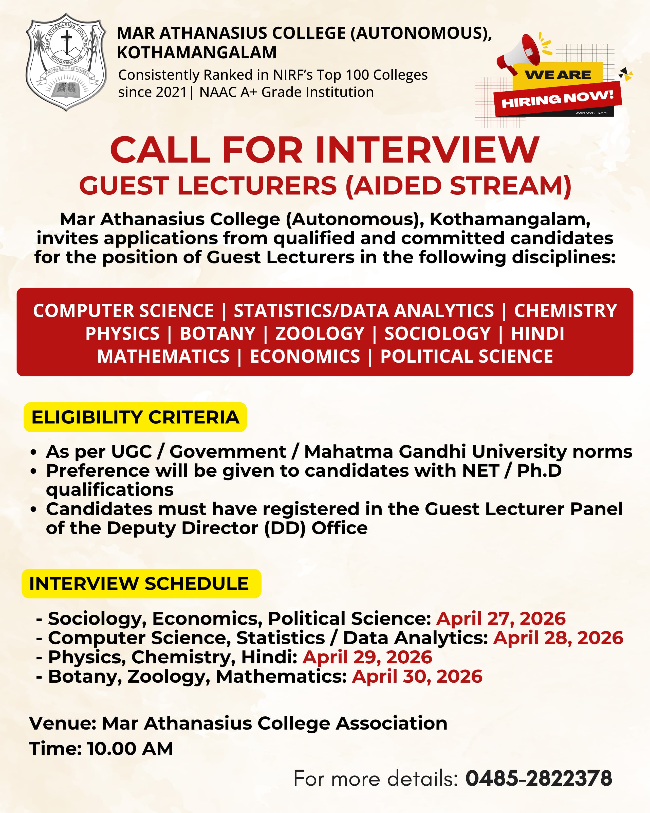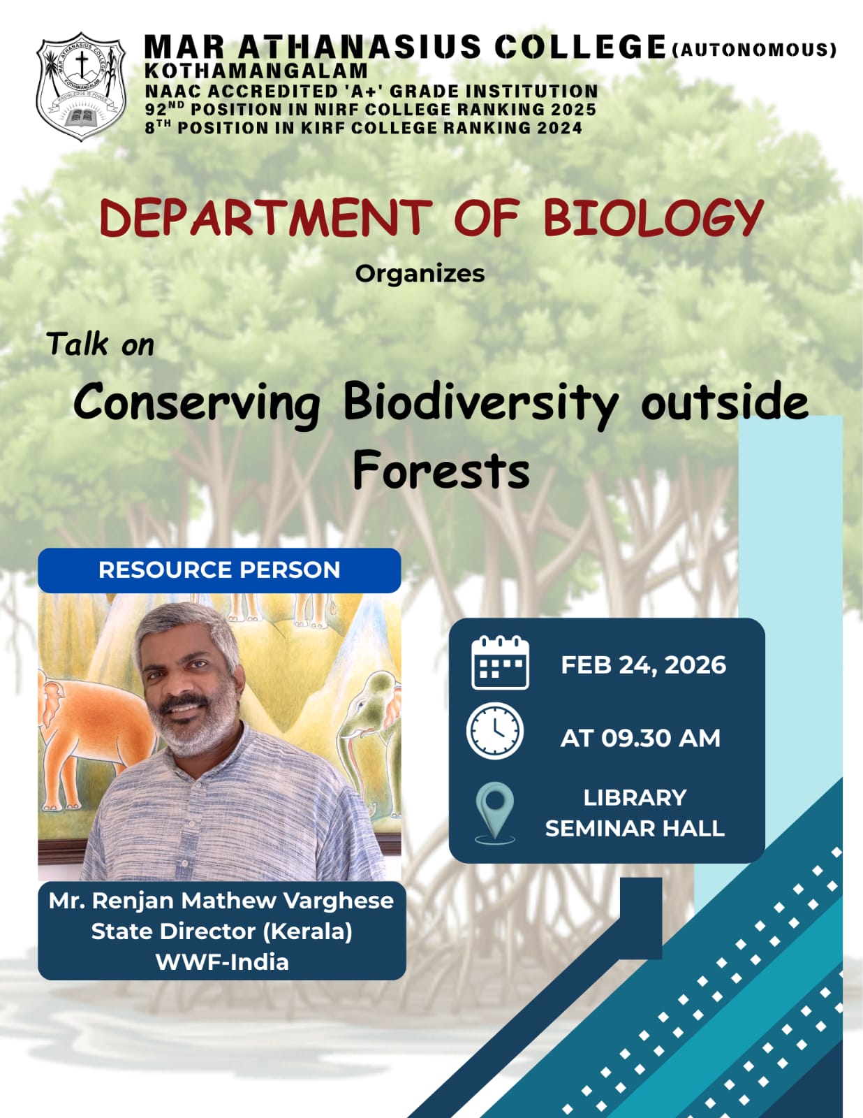 Mar Athanasius College, a premier institution of higher education in Kerala, was founded in 1955 at Kothamangalam. The college was guided and its character shaped by a group of visionaries led by its first Association Secretary and Principal Prof. M.P Varghese.