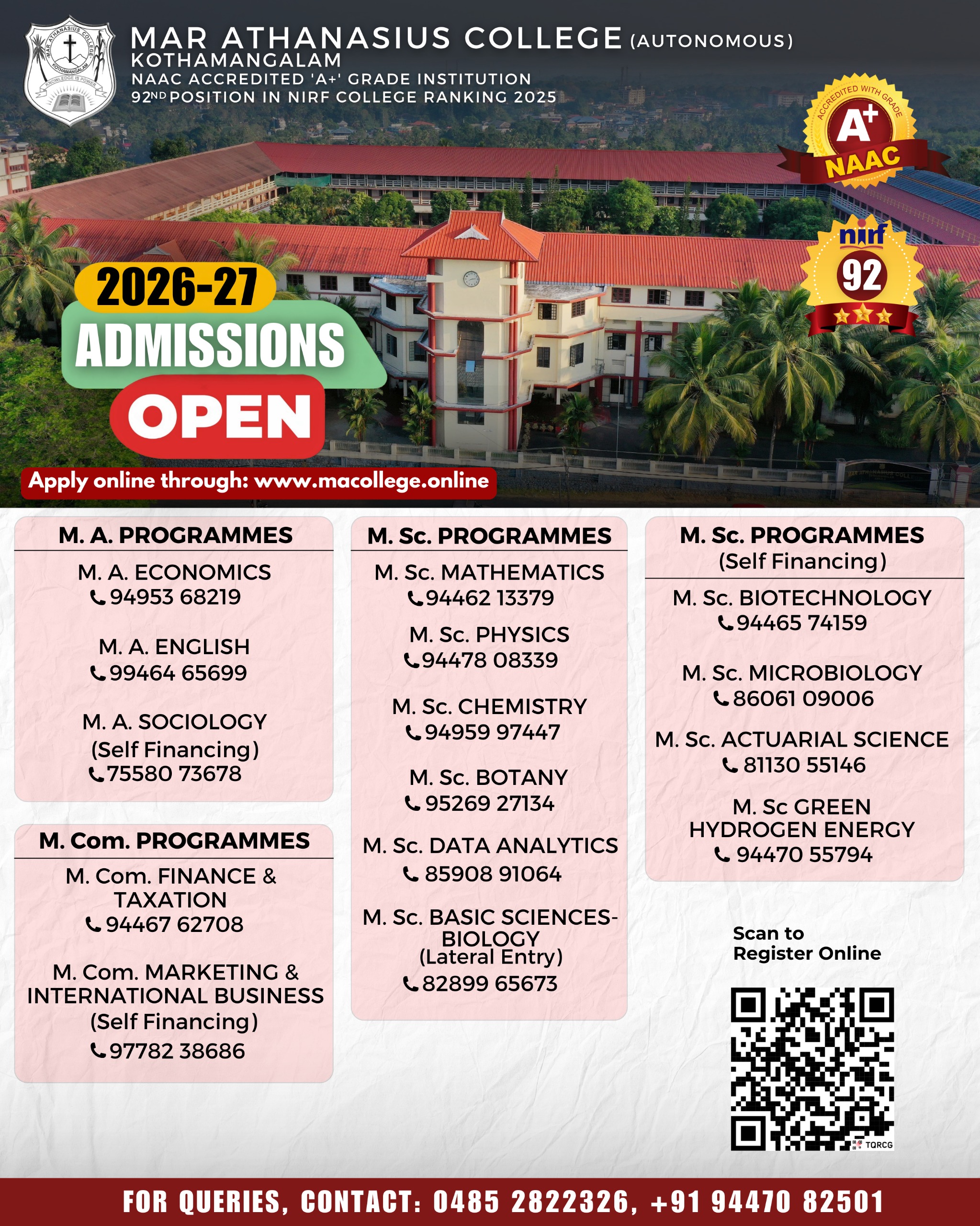 Management Quota admission-related enquiries, please contact - 0485 2822326, +91 9447082501