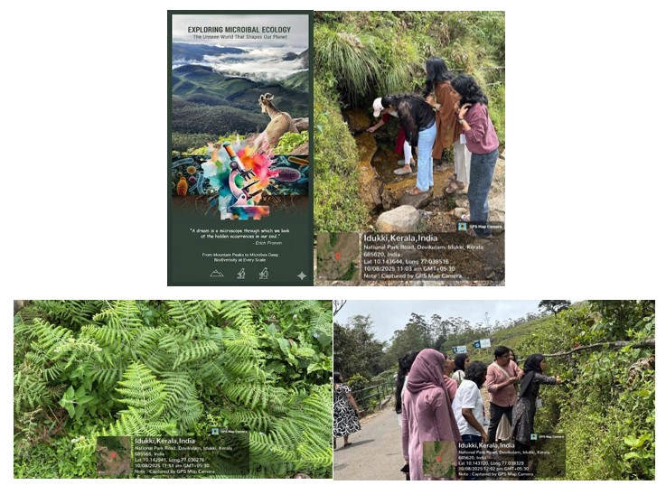 As part of our degree program, we embarked on a field visit to Eravikulam National Park, a protected area known for its rich biodiversity and unique ecosystems. Sixteen B. Sc. (Honours) Microbiology students along with two faculty members visited the shola forest of Eravikulam National Park, Munnar, Kerala on 8th October 2025. The visit aimed to explore the microbial ecosystem and diversity within the park, focusing on sample collection and analysis. The objectives of the study are: