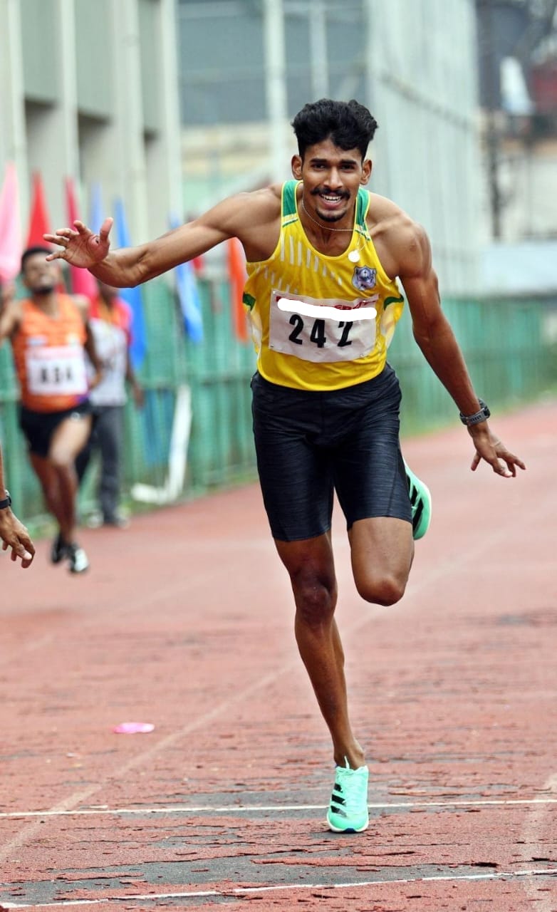 Adithya R., 2021-24 batch B.A. Sociology student, secured gold, silver, and bronze medals for 100m Hurdle and 4x100m Relay at the national, state, and university level.