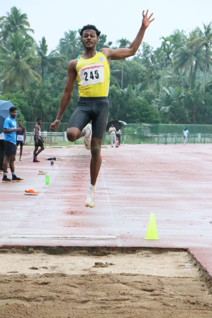 Akshay S., 2021-24 batch B.A. Sociology student, secured Best Athlete Award under 20 in Junior Athletics Meet. He also grabbed gold and bronze medals in Relay, and Mixed Relay at various national, state, inter-university, and university meets.