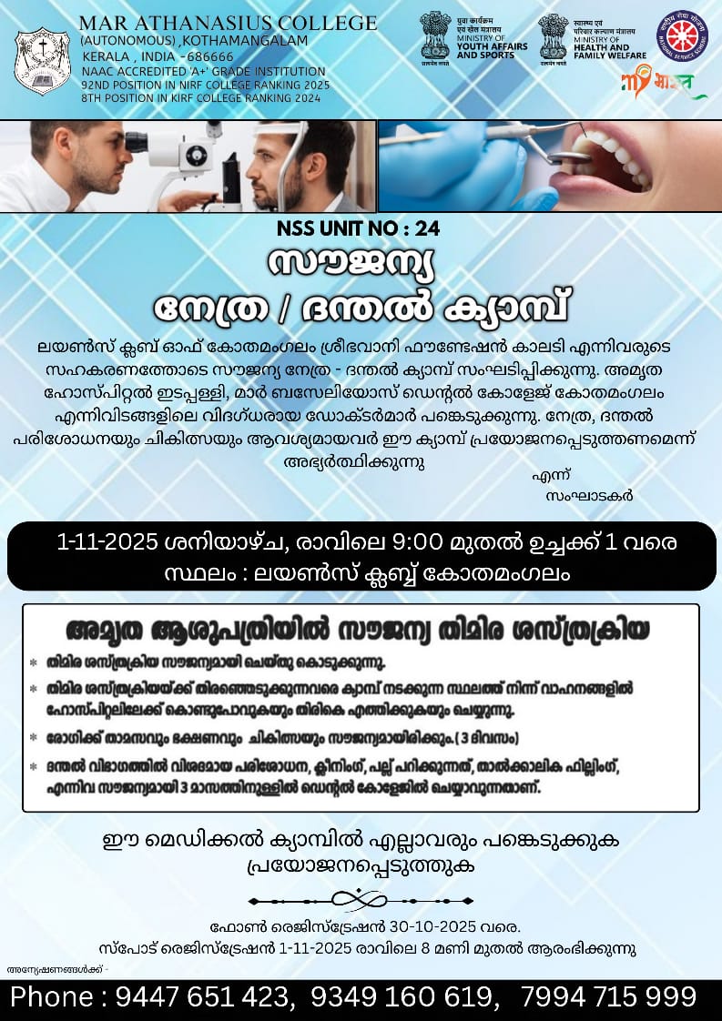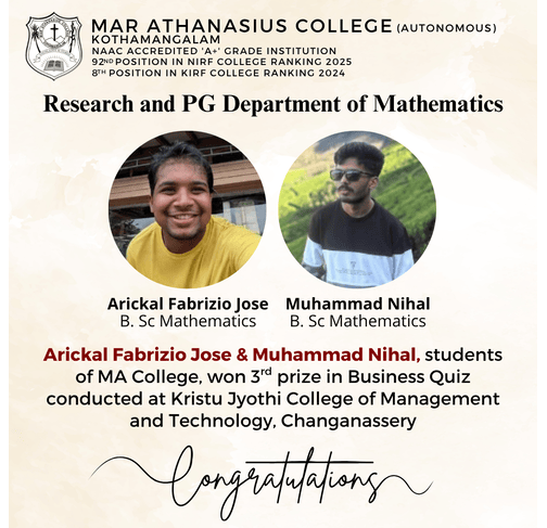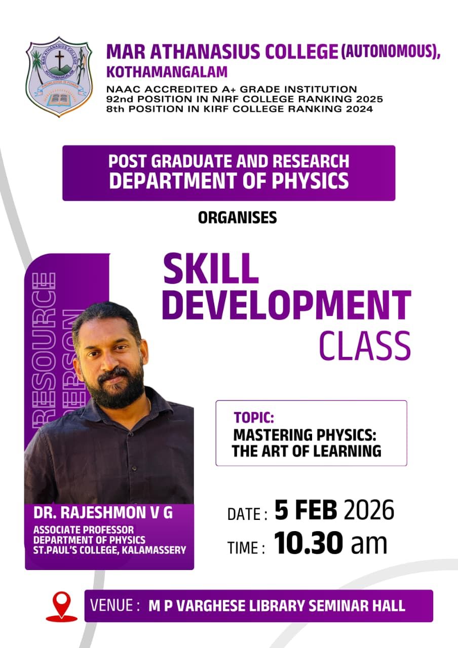 Mar Athanasius College, a premier institution of higher education in Kerala, was founded in 1955 at Kothamangalam. The college was guided and its character shaped by a group of visionaries led by its first Association Secretary and Principal Prof. M.P Varghese.