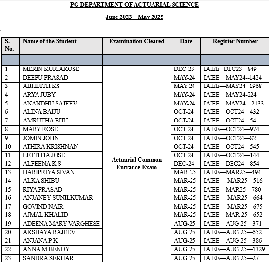 Actuarial Common Entrance Test cleared by students (2023-2025)