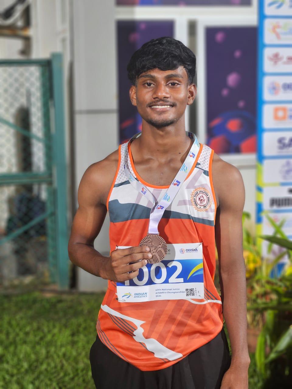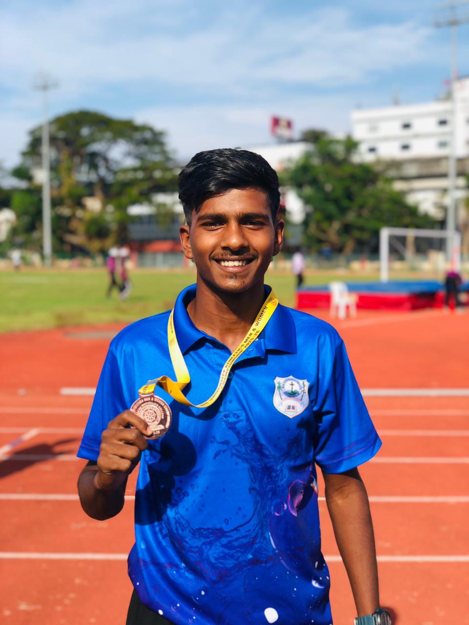 Prince Varghese, 2022-25 batch B.A. Sociology student, bagged bronze medal for 10000m Athletics at the state level.