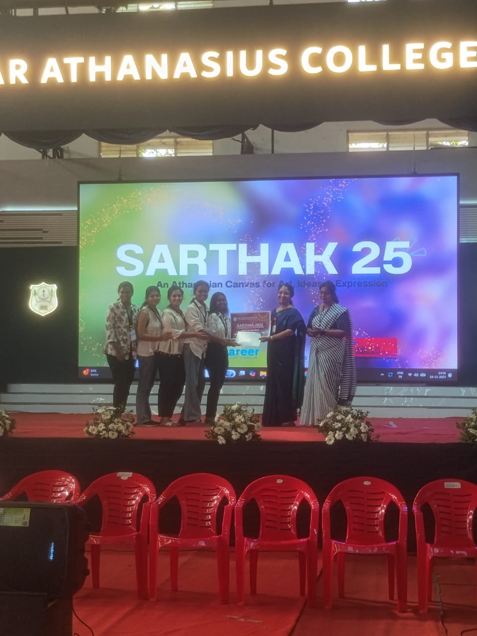 Rose Mariya, 2020-23 batch B.A. Sociology student, won gold medal for Intercollegiate Women's Team Kata, and secured fifth position for All India Inter University Women's Team Kata.